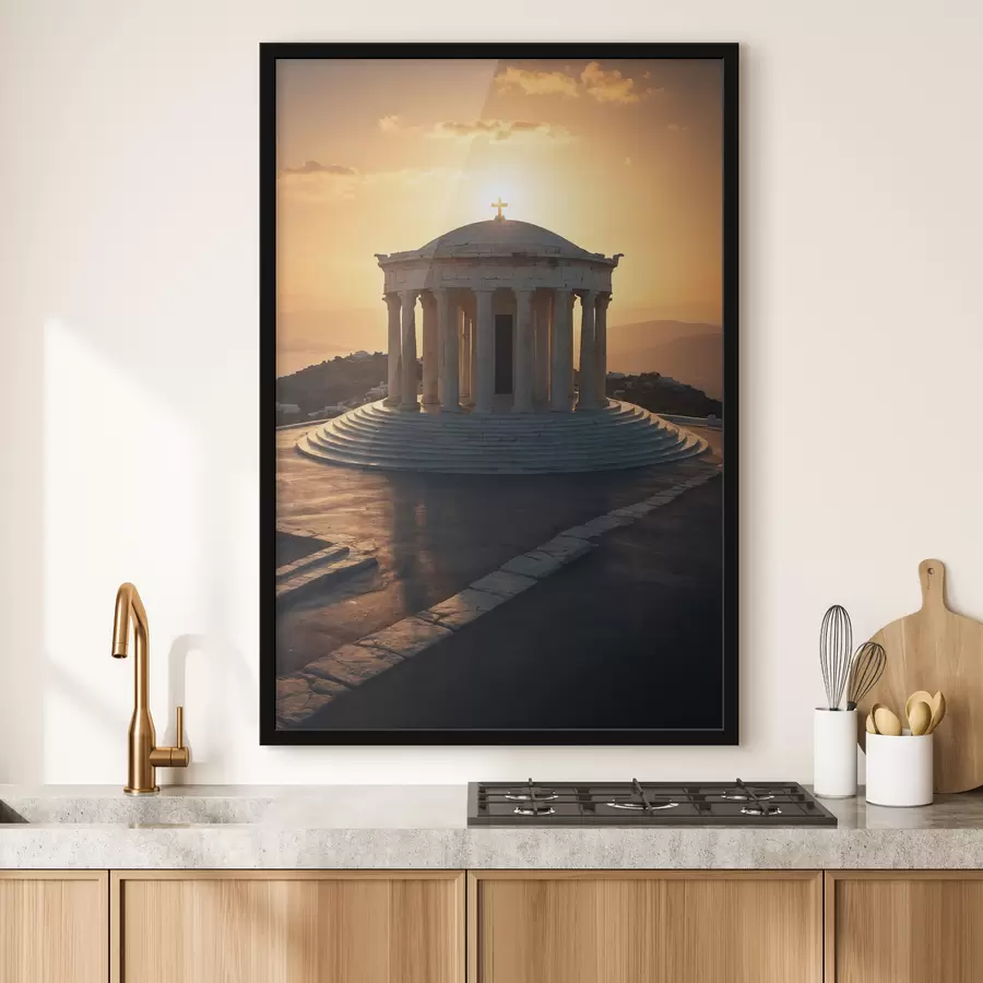 Budistų vienuolis raudonu apsiaustu, Budos siluetas, akvarelės stilius