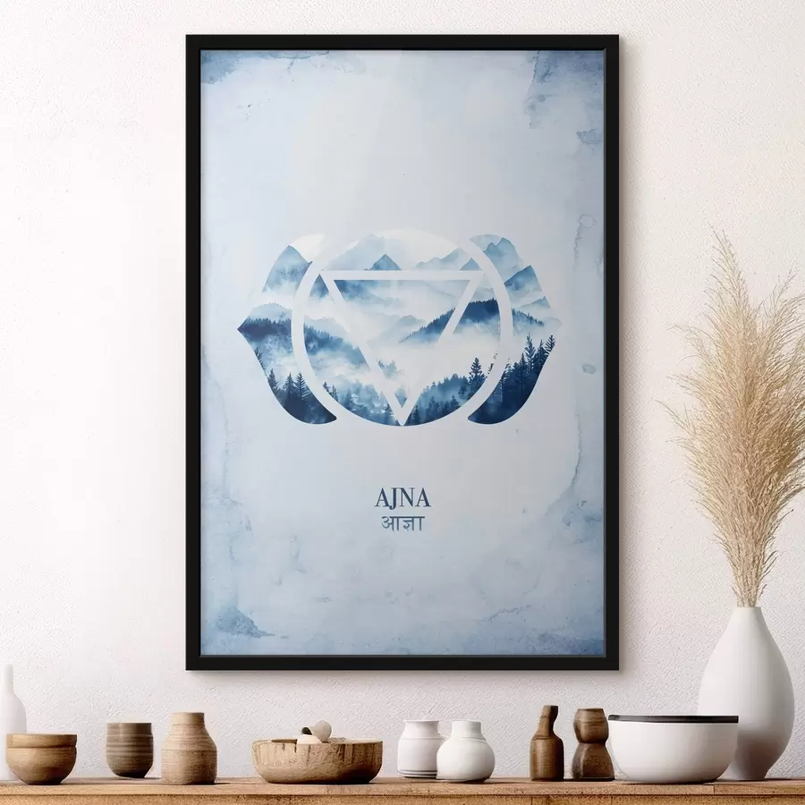 Adžnos čakra, trečiosios akies čakra, ezoterika, meditacija, budizmas, akvarelės stiliaus kalnai