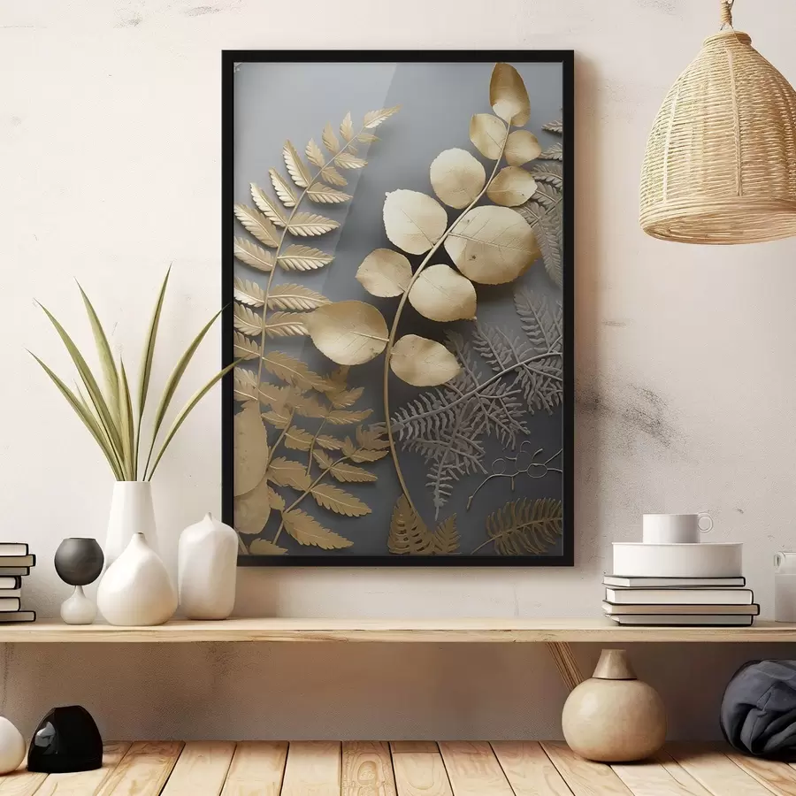 Reljefiniai apskritimai ir šaka šiltų neutralių atspalvių