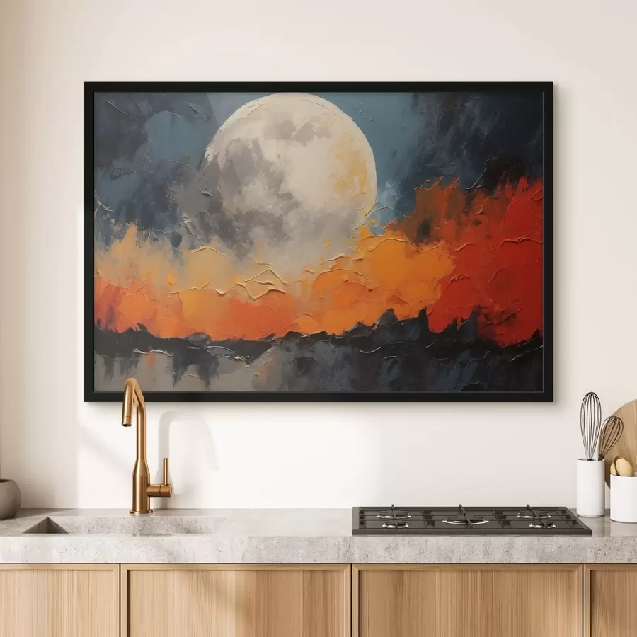 Abstrakti tapyba aliejiniais dažais su mėnuliu