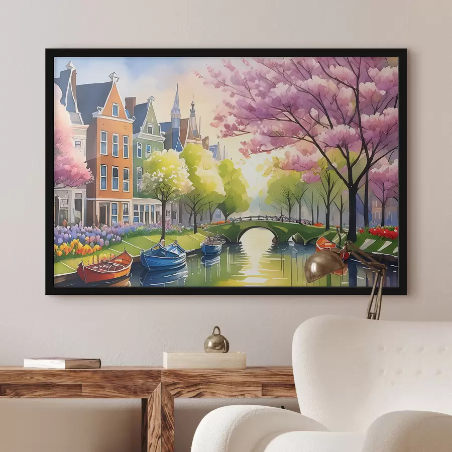 Vaizdingas akvarelės paveikslo vaizdas į Didįjį kanalą Venecijoje, Italijoje