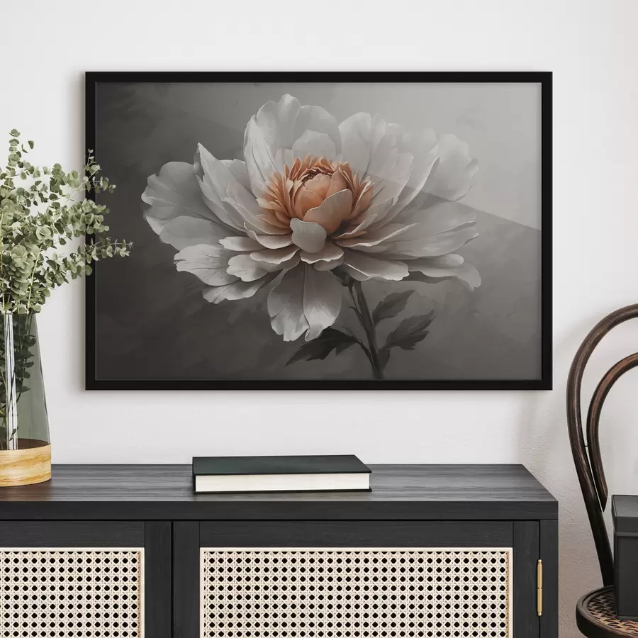 Rožinės gėlės ir lapai aliejinės tapybos stiliumi