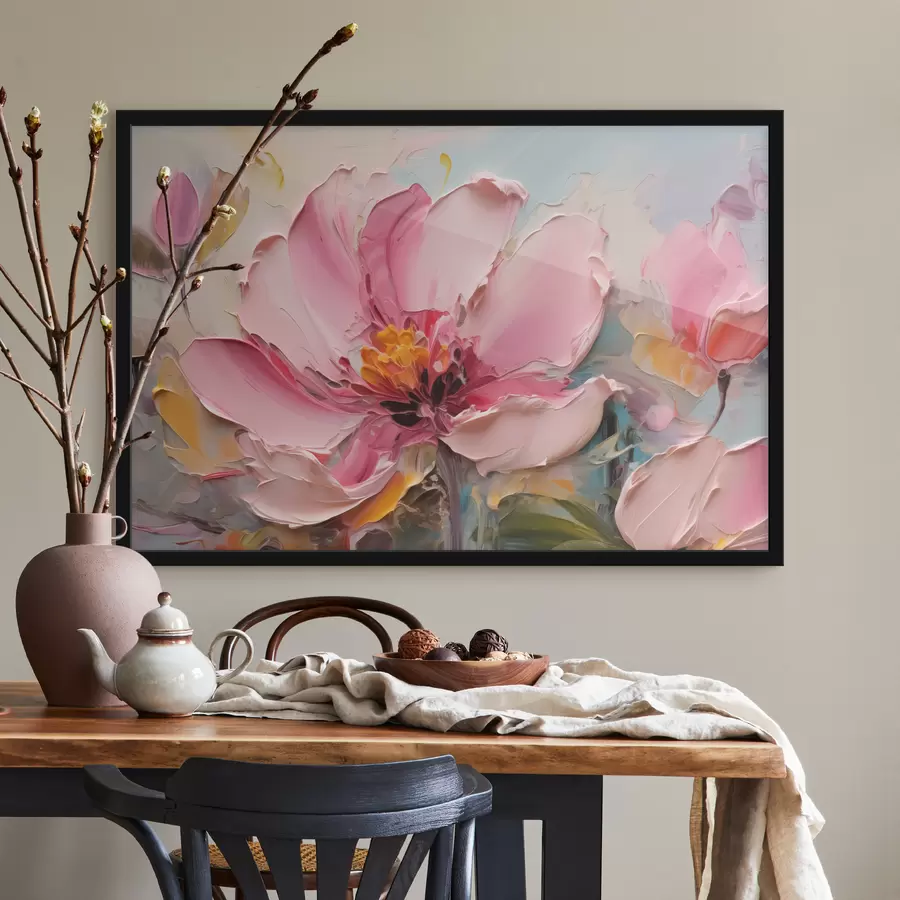 Didelės rožinės gėlės dažų potėpių imitacija