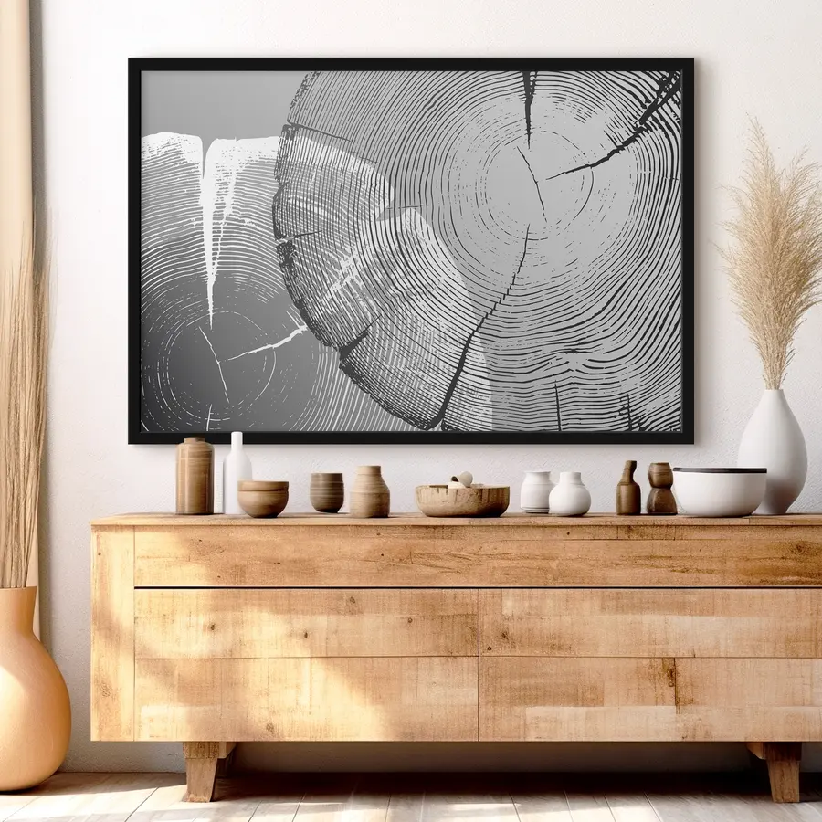 Iš medžio išpjauti juodi ir balti apskritimai