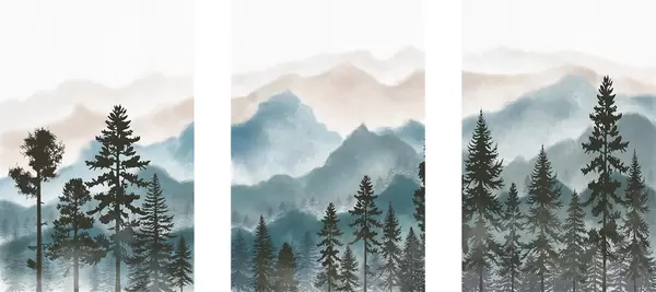 Plakatas Ramūs kalnai ir medžių siluetai Ne d00244