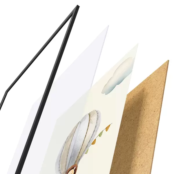 Plakatą sudaro rėmas, pleksiklas, atspausdintas vaizdas ir medžio drožlių plokštės pagrindas. Plakatą galima iš karto pakabinti ant sienos dėl kitoje pusėje esančių laikiklių.