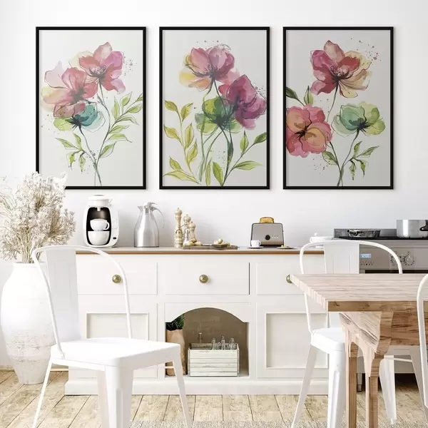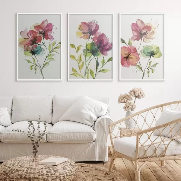 Plakatas Švelnios akvarelės gėlės su dažų purslais Ne d00340