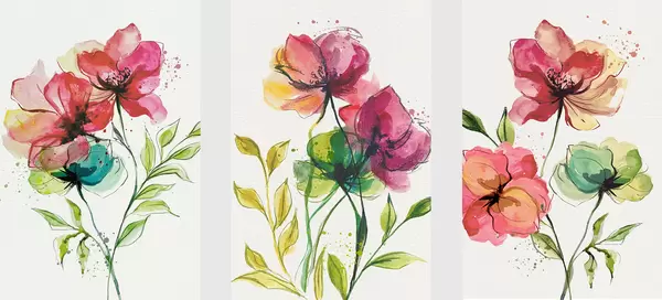 Plakatas Švelnios akvarelės gėlės su dažų purslais d00340