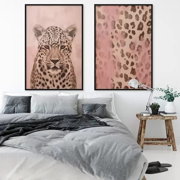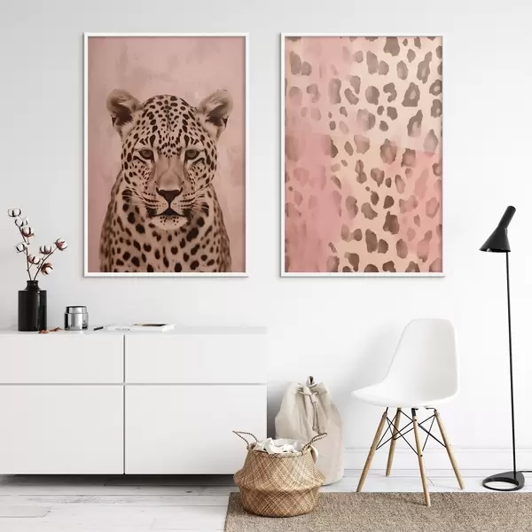 Plakatas Gepardo portretas, abstraktus raštas su leopardo atspaudu rausvame fone Ne d00402