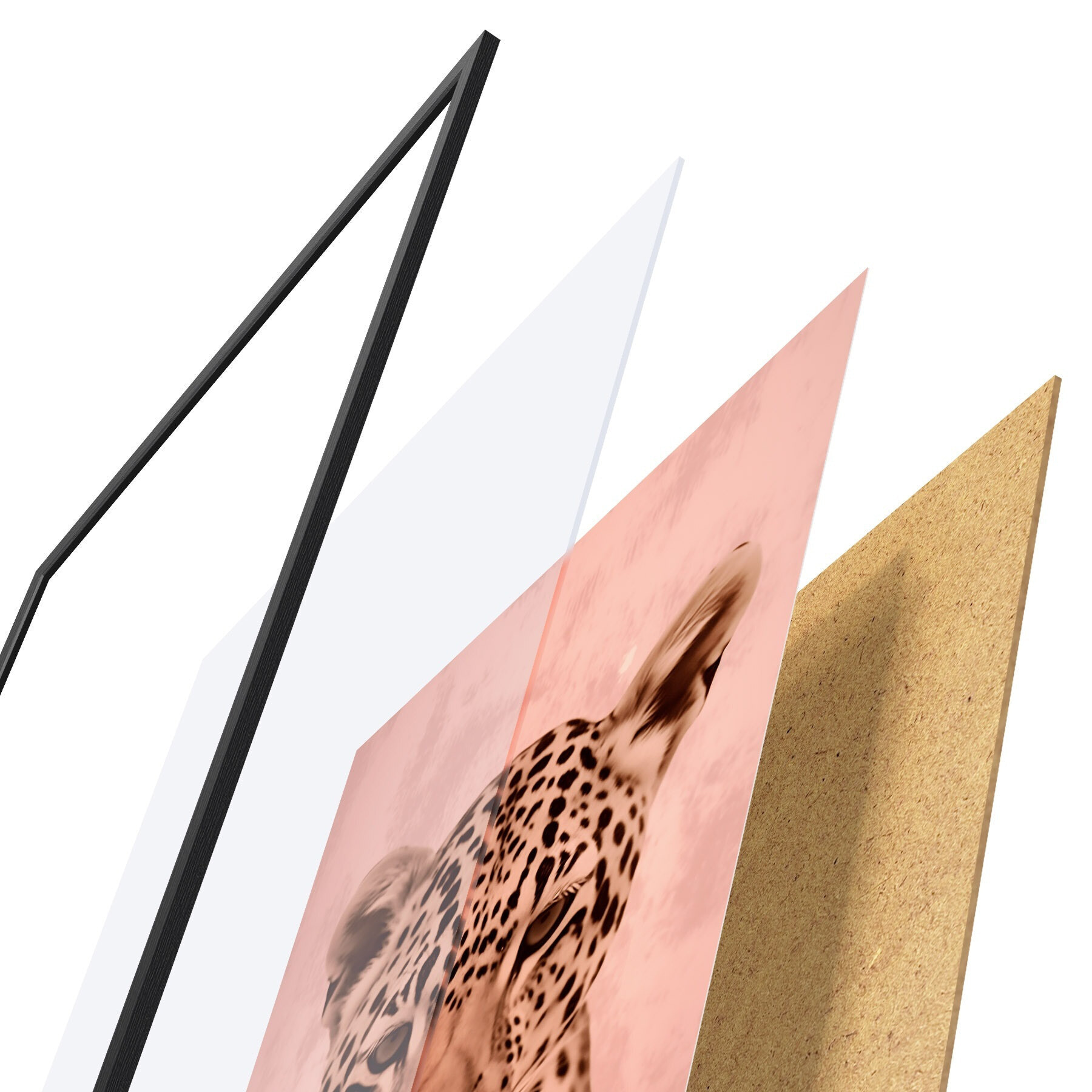 Plakatas Gepardo portretas, abstraktus raštas su leopardo atspaudu rausvame fone d00402