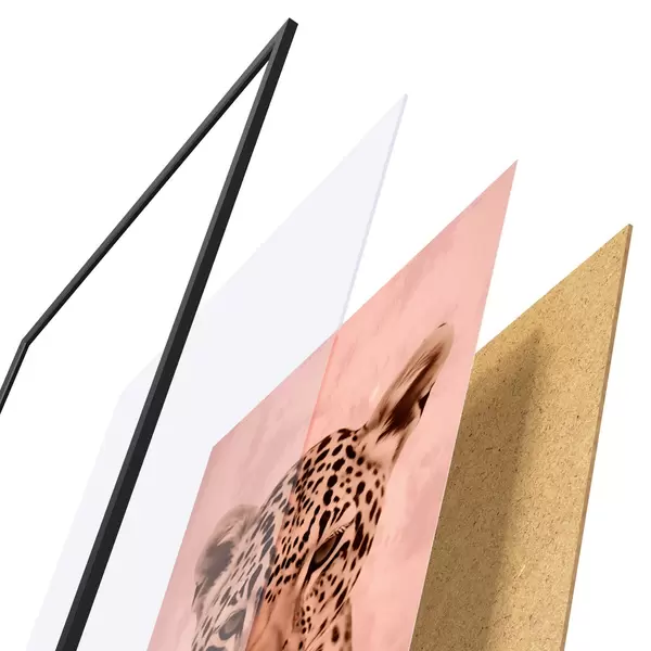 Plakatą sudaro rėmas, pleksiklas, atspausdintas vaizdas ir medžio drožlių plokštės pagrindas. Plakatą galima iš karto pakabinti ant sienos dėl kitoje pusėje esančių laikiklių.