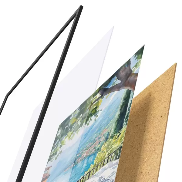 Plakatą sudaro rėmas, pleksiklas, atspausdintas vaizdas ir medžio drožlių plokštės pagrindas. Plakatą galima iš karto pakabinti ant sienos dėl kitoje pusėje esančių laikiklių.