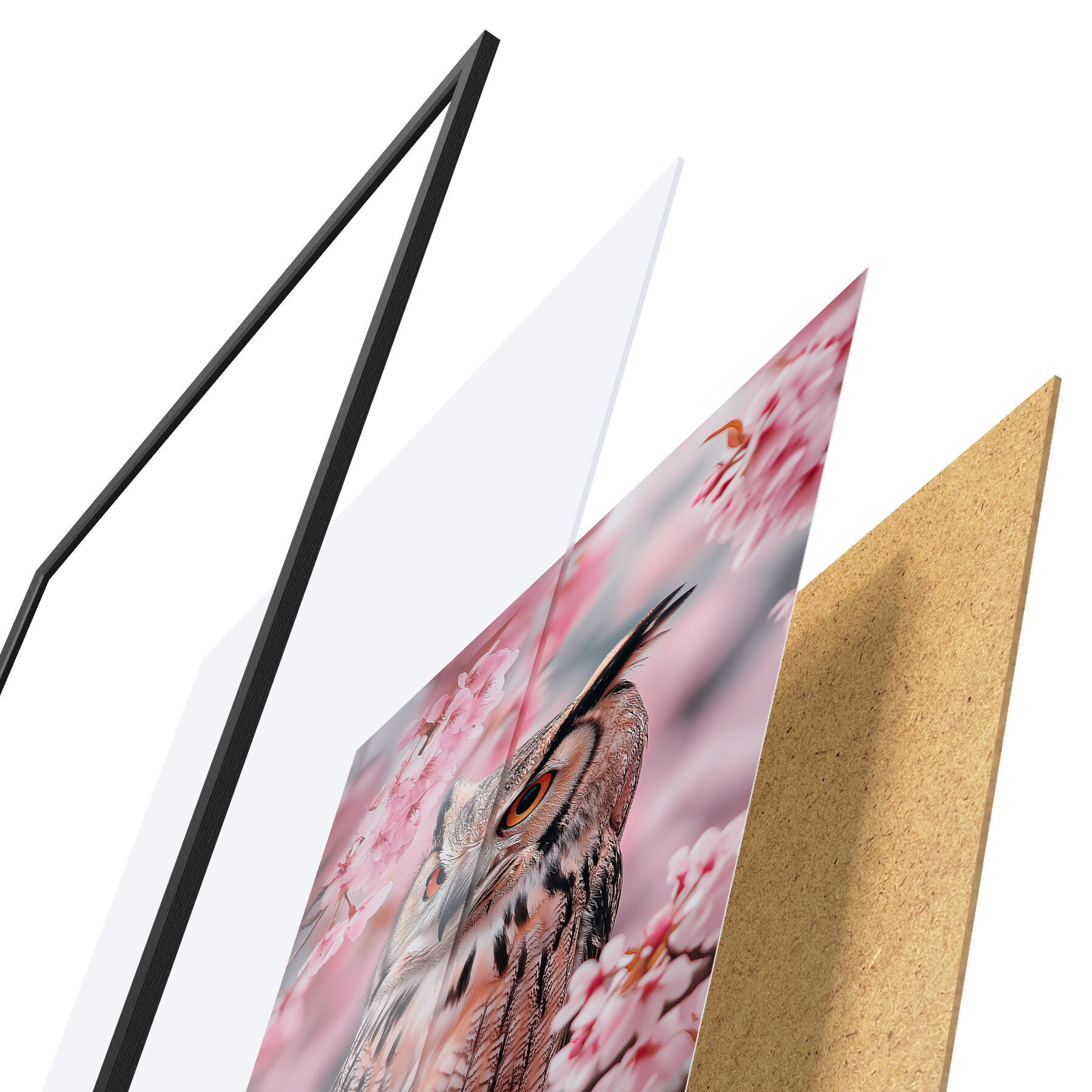 Plakatą sudaro rėmas, pleksiklas, atspausdintas vaizdas ir medžio drožlių plokštės pagrindas. Plakatą galima iš karto pakabinti ant sienos dėl kitoje pusėje esančių laikiklių.