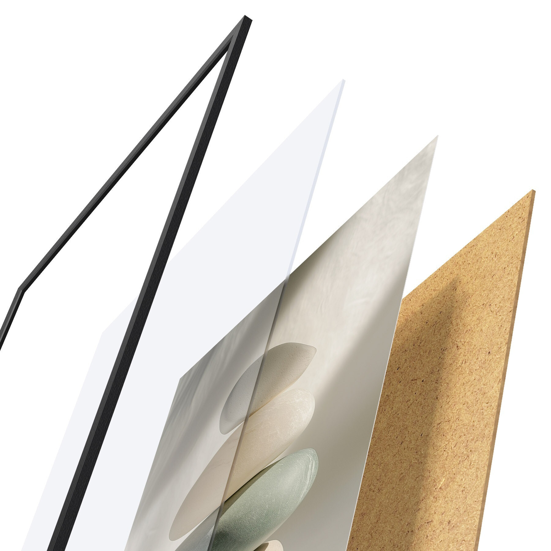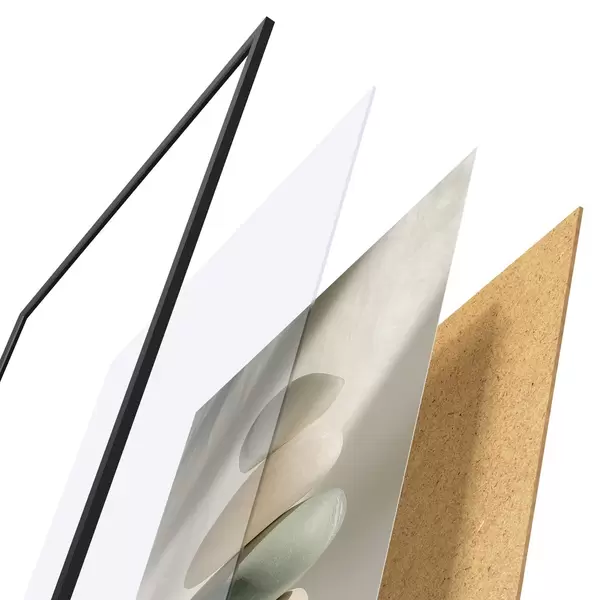 Plakatą sudaro rėmas, pleksiklas, atspausdintas vaizdas ir medžio drožlių plokštės pagrindas. Plakatą galima iš karto pakabinti ant sienos dėl kitoje pusėje esančių laikiklių.