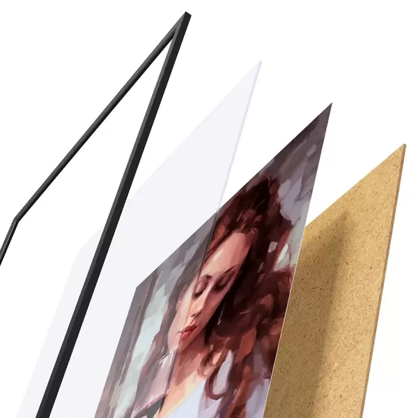 Plakatą sudaro rėmas, pleksiklas, atspausdintas vaizdas ir medžio drožlių plokštės pagrindas. Plakatą galima iš karto pakabinti ant sienos dėl kitoje pusėje esančių laikiklių.