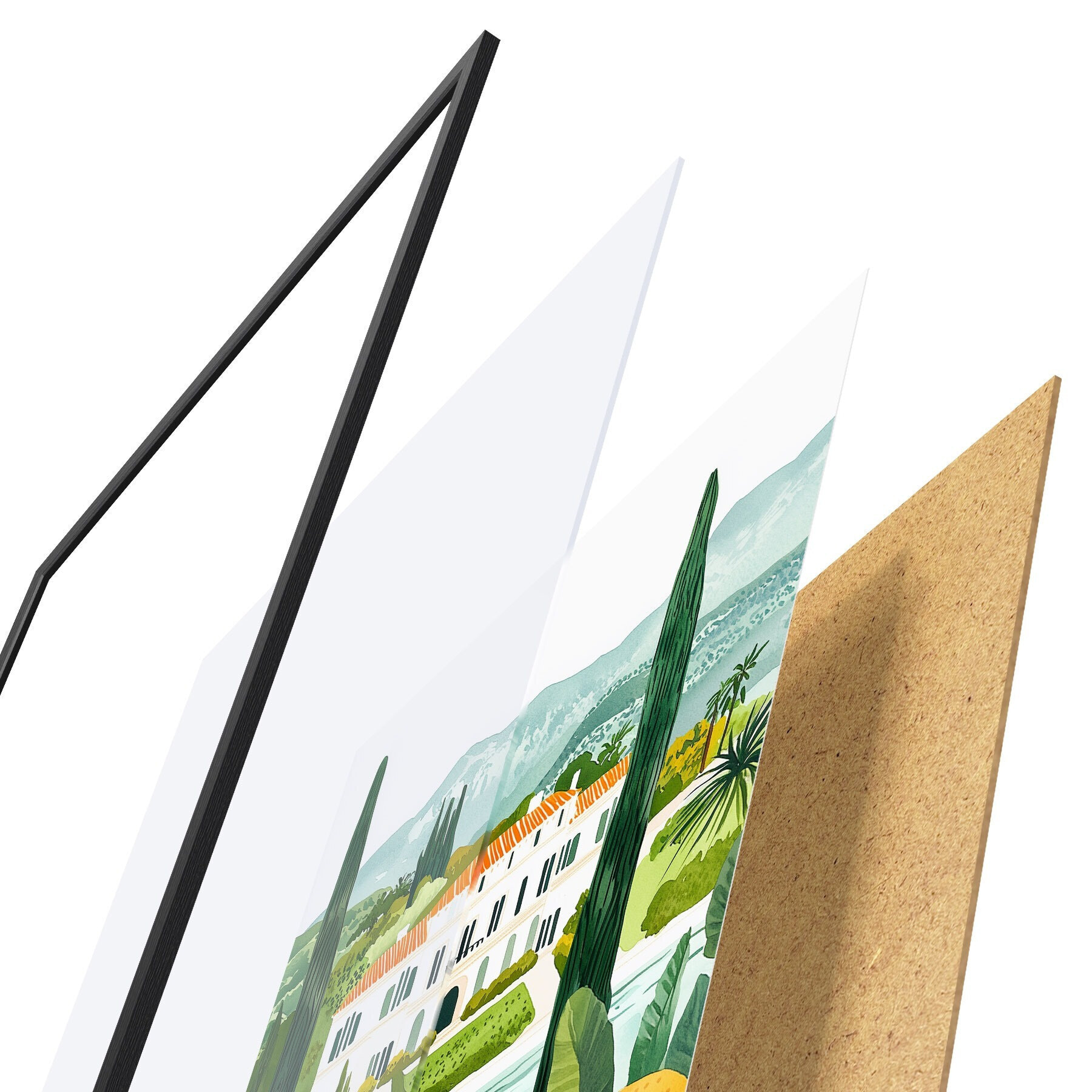 Plakatą sudaro rėmas, pleksiklas, atspausdintas vaizdas ir medžio drožlių plokštės pagrindas. Plakatą galima iš karto pakabinti ant sienos dėl kitoje pusėje esančių laikiklių.