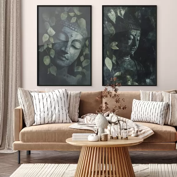Plakatas Žalias Buda atogrąžų lapuose, akvarelės stilius Ne d00451