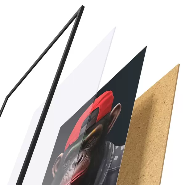 Plakatą sudaro rėmas, pleksiklas, atspausdintas vaizdas ir medžio drožlių plokštės pagrindas. Plakatą galima iš karto pakabinti ant sienos dėl kitoje pusėje esančių laikiklių.