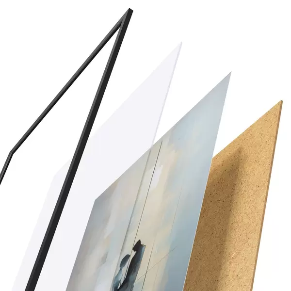 Plakatą sudaro rėmas, pleksiklas, atspausdintas vaizdas ir medžio drožlių plokštės pagrindas. Plakatą galima iš karto pakabinti ant sienos dėl kitoje pusėje esančių laikiklių.