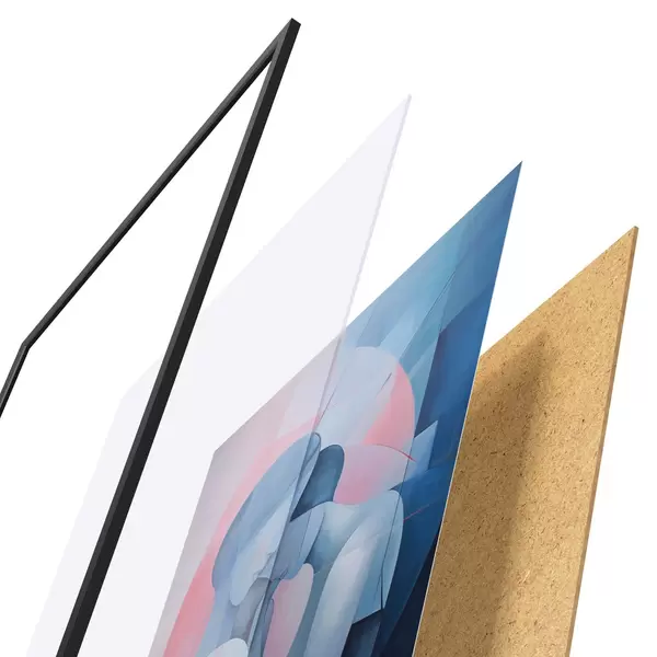 Plakatą sudaro rėmas, pleksiklas, atspausdintas vaizdas ir medžio drožlių plokštės pagrindas. Plakatą galima iš karto pakabinti ant sienos dėl kitoje pusėje esančių laikiklių.