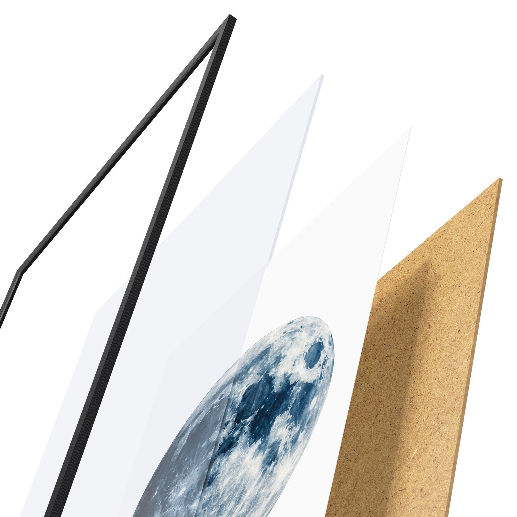 Plakatą sudaro rėmas, pleksiklas, atspausdintas vaizdas ir medžio drožlių plokštės pagrindas. Plakatą galima iš karto pakabinti ant sienos dėl kitoje pusėje esančių laikiklių.