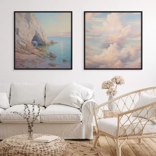 Plakatas Bangos ant uolėto kranto ir dangus su debesimis d00487
