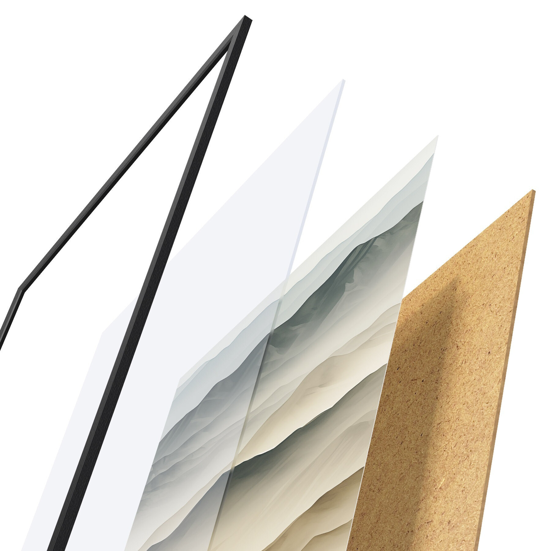 Plakatą sudaro rėmas, pleksiklas, atspausdintas vaizdas ir medžio drožlių plokštės pagrindas. Plakatą galima iš karto pakabinti ant sienos dėl kitoje pusėje esančių laikiklių.