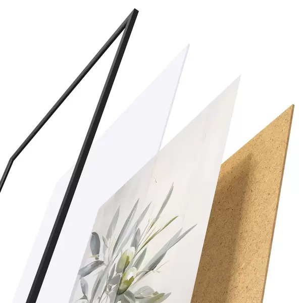 Plakatą sudaro rėmas, pleksiklas, atspausdintas vaizdas ir medžio drožlių plokštės pagrindas. Plakatą galima iš karto pakabinti ant sienos dėl kitoje pusėje esančių laikiklių.