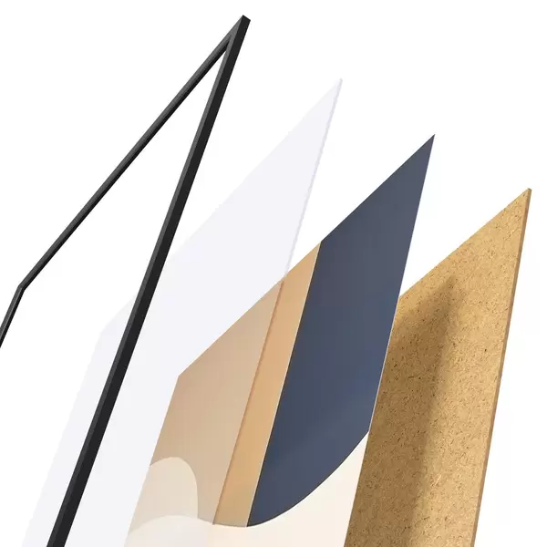 Plakatą sudaro rėmas, pleksiklas, atspausdintas vaizdas ir medžio drožlių plokštės pagrindas. Plakatą galima iš karto pakabinti ant sienos dėl kitoje pusėje esančių laikiklių.