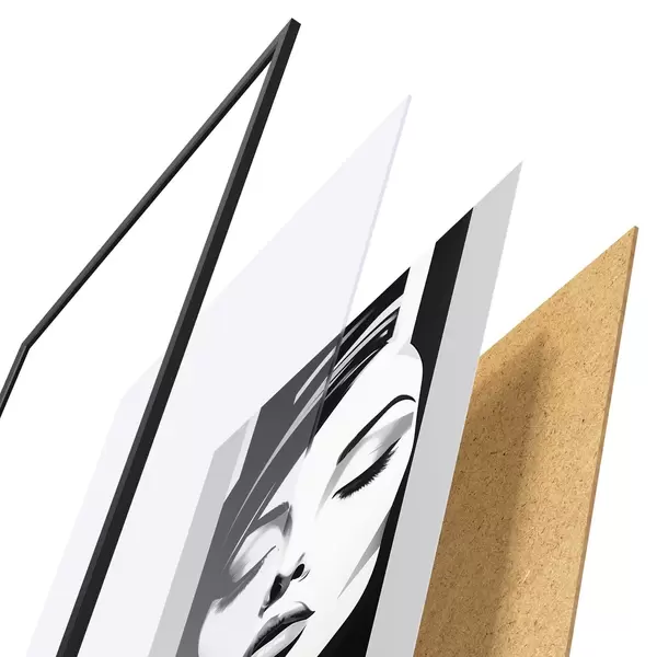 Plakatą sudaro rėmas, pleksiklas, atspausdintas vaizdas ir medžio drožlių plokštės pagrindas. Plakatą galima iš karto pakabinti ant sienos dėl kitoje pusėje esančių laikiklių.