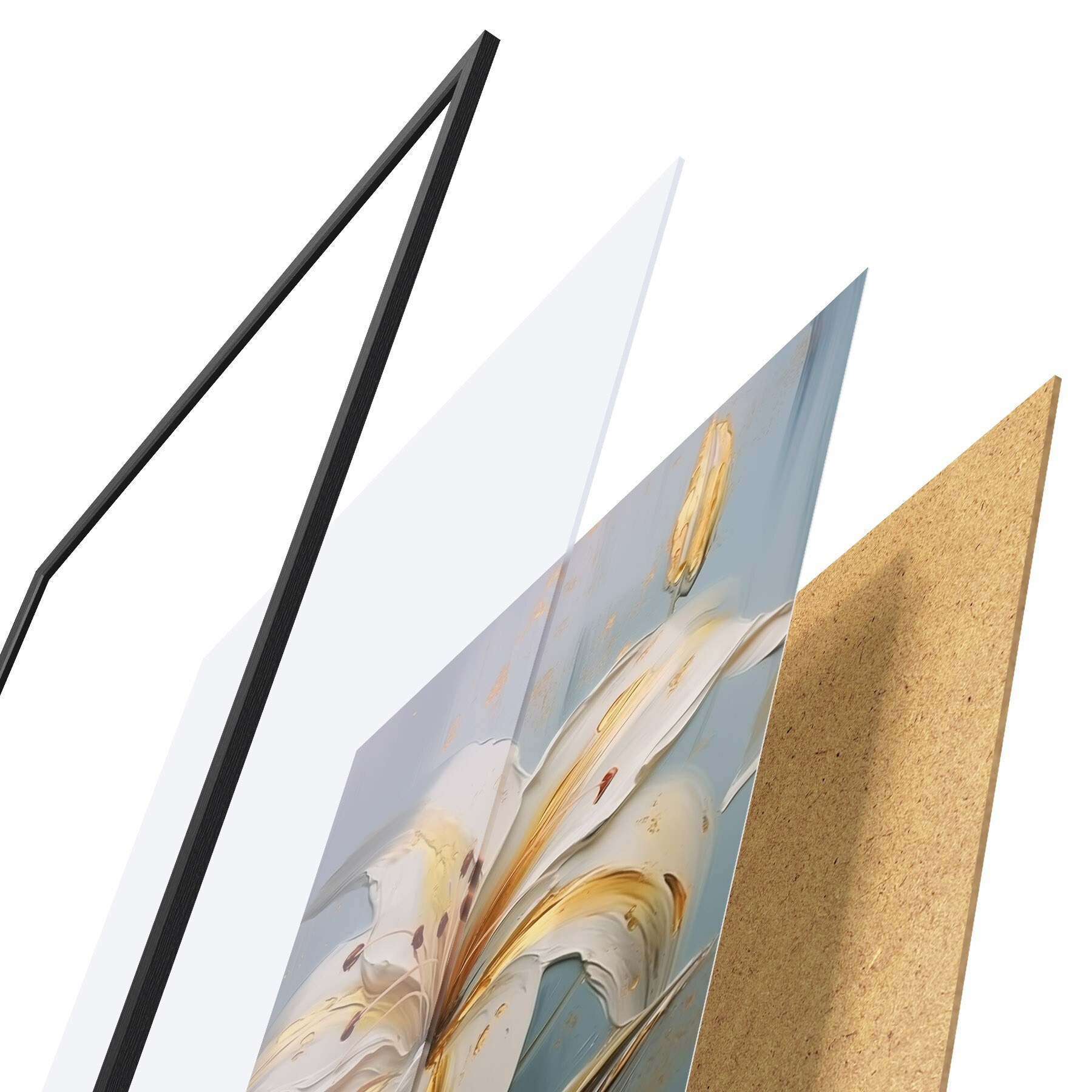 Plakatą sudaro rėmas, pleksiklas, atspausdintas vaizdas ir medžio drožlių plokštės pagrindas. Plakatą galima iš karto pakabinti ant sienos dėl kitoje pusėje esančių laikiklių.