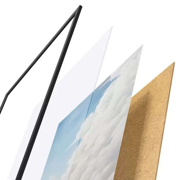 Plakatą sudaro rėmas, pleksiklas, atspausdintas vaizdas ir medžio drožlių plokštės pagrindas. Plakatą galima iš karto pakabinti ant sienos dėl kitoje pusėje esančių laikiklių.