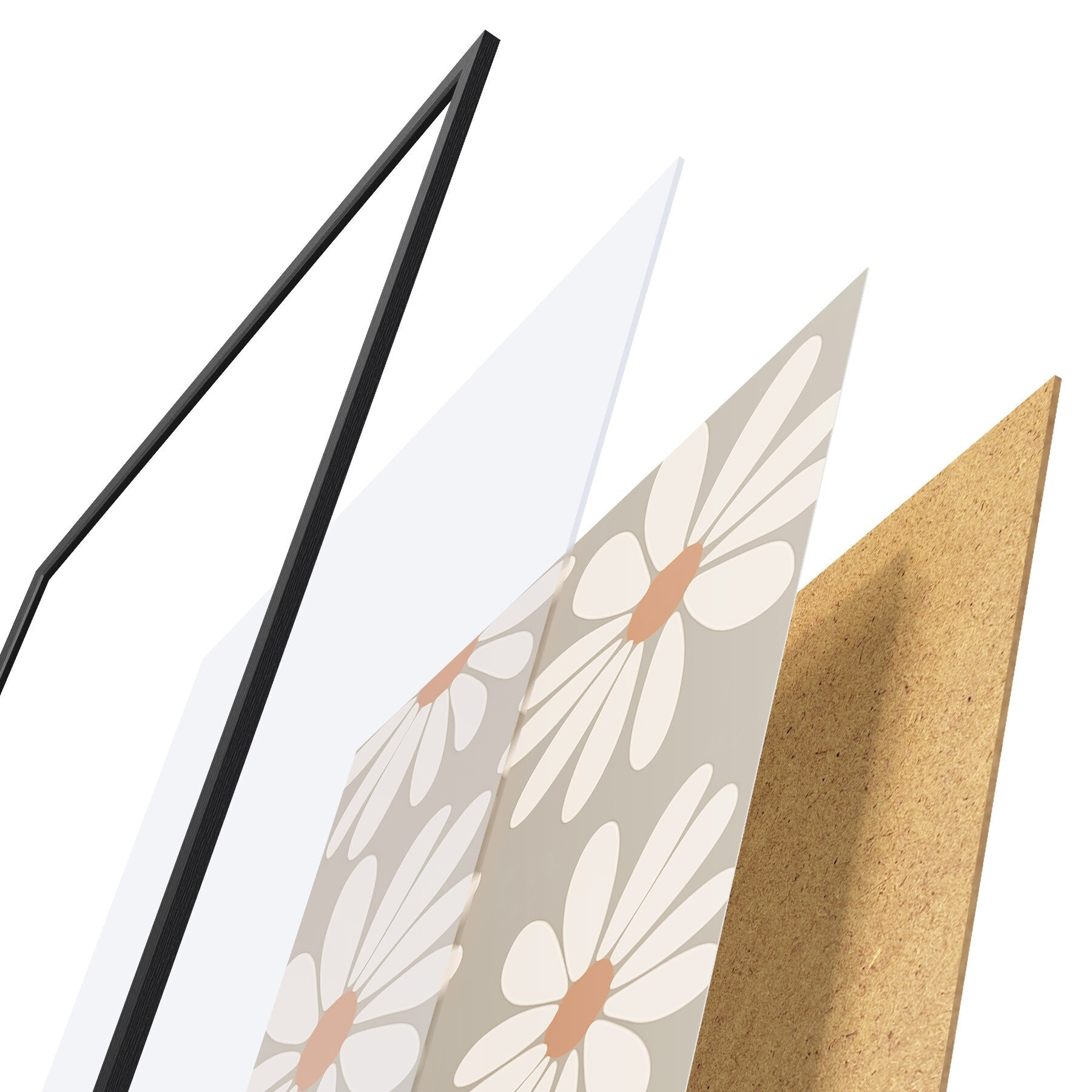 Plakatą sudaro rėmas, pleksiklas, atspausdintas vaizdas ir medžio drožlių plokštės pagrindas. Plakatą galima iš karto pakabinti ant sienos dėl kitoje pusėje esančių laikiklių.