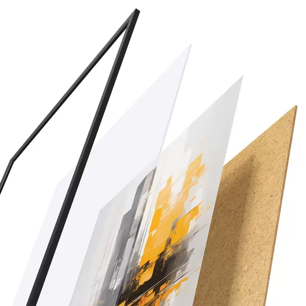 Plakatą sudaro rėmas, pleksiklas, atspausdintas vaizdas ir medžio drožlių plokštės pagrindas. Plakatą galima iš karto pakabinti ant sienos dėl kitoje pusėje esančių laikiklių.