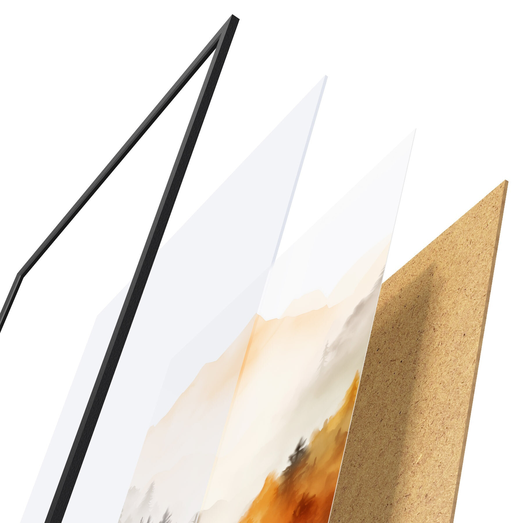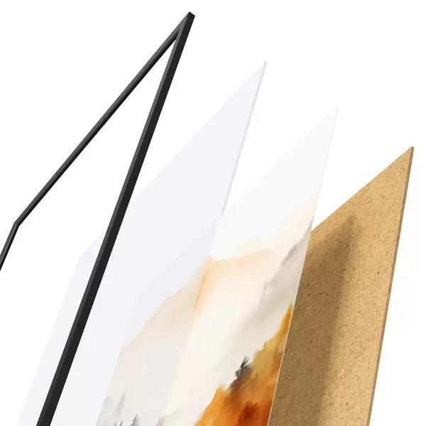 Plakatą sudaro rėmas, pleksiklas, atspausdintas vaizdas ir medžio drožlių plokštės pagrindas. Plakatą galima iš karto pakabinti ant sienos dėl kitoje pusėje esančių laikiklių.