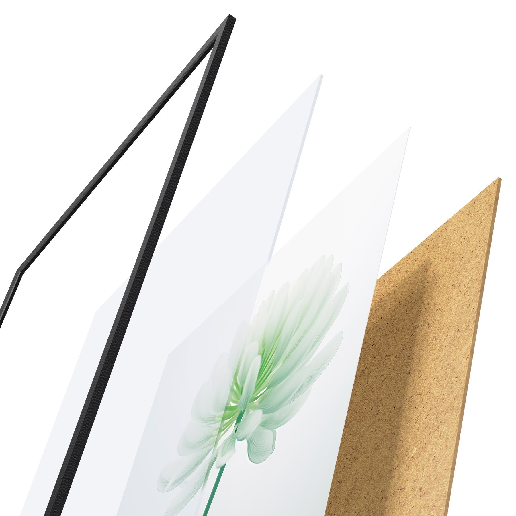 Plakatą sudaro rėmas, pleksiklas, atspausdintas vaizdas ir medžio drožlių plokštės pagrindas. Plakatą galima iš karto pakabinti ant sienos dėl kitoje pusėje esančių laikiklių.