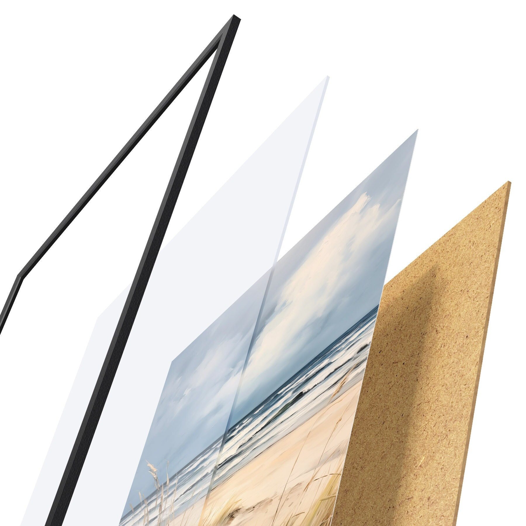 Plakatą sudaro rėmas, pleksiklas, atspausdintas vaizdas ir medžio drožlių plokštės pagrindas. Plakatą galima iš karto pakabinti ant sienos dėl kitoje pusėje esančių laikiklių.