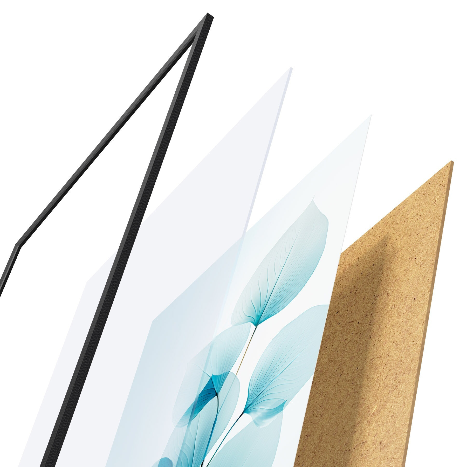 Plakatą sudaro rėmas, pleksiklas, atspausdintas vaizdas ir medžio drožlių plokštės pagrindas. Plakatą galima iš karto pakabinti ant sienos dėl kitoje pusėje esančių laikiklių.