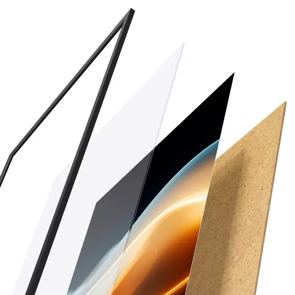 Plakatą sudaro rėmas, pleksiklas, atspausdintas vaizdas ir medžio drožlių plokštės pagrindas. Plakatą galima iš karto pakabinti ant sienos dėl kitoje pusėje esančių laikiklių.