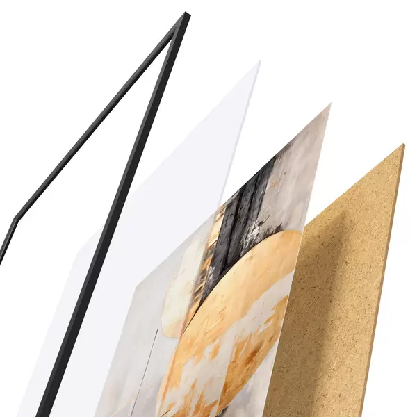 Plakatą sudaro rėmas, pleksiklas, atspausdintas vaizdas ir medžio drožlių plokštės pagrindas. Plakatą galima iš karto pakabinti ant sienos dėl kitoje pusėje esančių laikiklių.