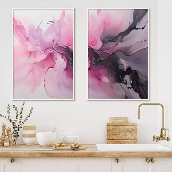 Plakatas Abstraktūs rausvos, violetinės ir juodos spalvos sūkuriai susilieja į sklandžią, organišką kompoziciją ir sukuria judėjimo įspūdį Ne d00532