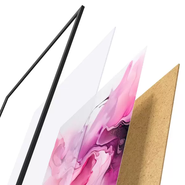 Plakatą sudaro rėmas, pleksiklas, atspausdintas vaizdas ir medžio drožlių plokštės pagrindas. Plakatą galima iš karto pakabinti ant sienos dėl kitoje pusėje esančių laikiklių.