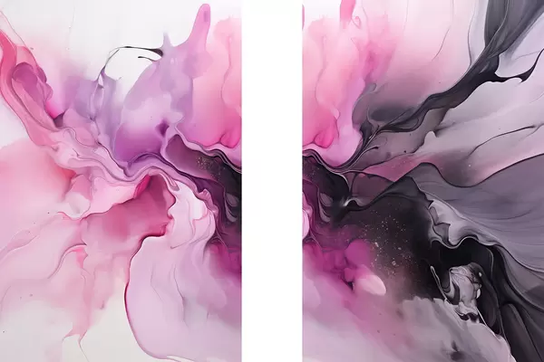 Plakatas Abstraktūs rausvos, violetinės ir juodos spalvos sūkuriai susilieja į sklandžią, organišką kompoziciją ir sukuria judėjimo įspūdį d00532