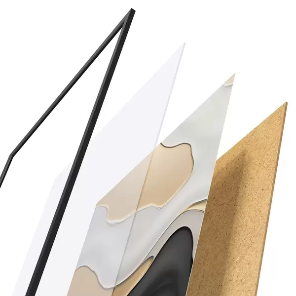 Plakatą sudaro rėmas, pleksiklas, atspausdintas vaizdas ir medžio drožlių plokštės pagrindas. Plakatą galima iš karto pakabinti ant sienos dėl kitoje pusėje esančių laikiklių.