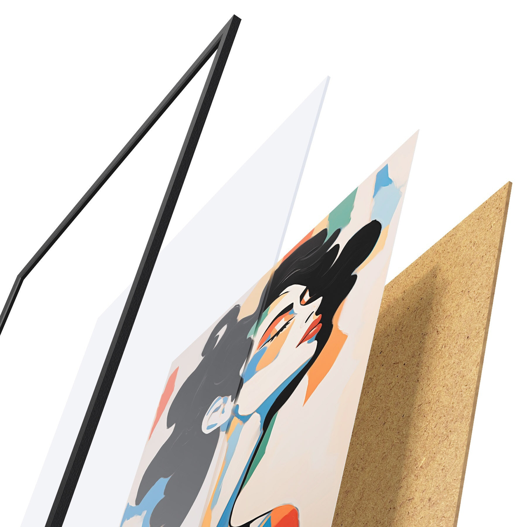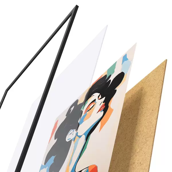 Plakatą sudaro rėmas, pleksiklas, atspausdintas vaizdas ir medžio drožlių plokštės pagrindas. Plakatą galima iš karto pakabinti ant sienos dėl kitoje pusėje esančių laikiklių.