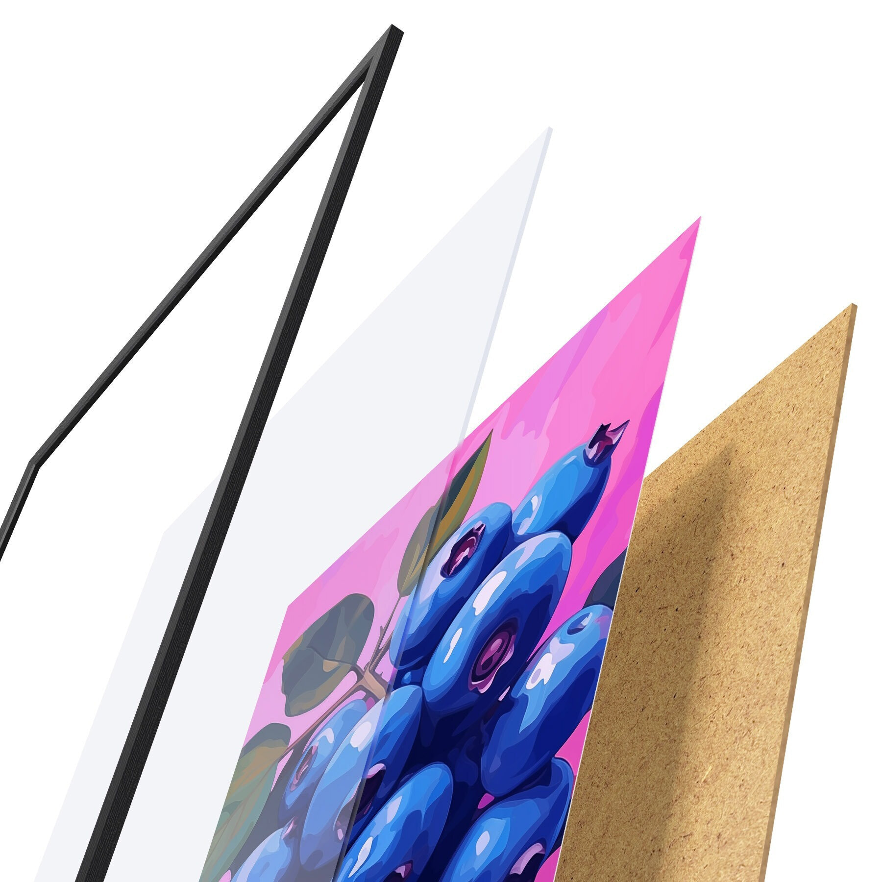 Plakatą sudaro rėmas, pleksiklas, atspausdintas vaizdas ir medžio drožlių plokštės pagrindas. Plakatą galima iš karto pakabinti ant sienos dėl kitoje pusėje esančių laikiklių.