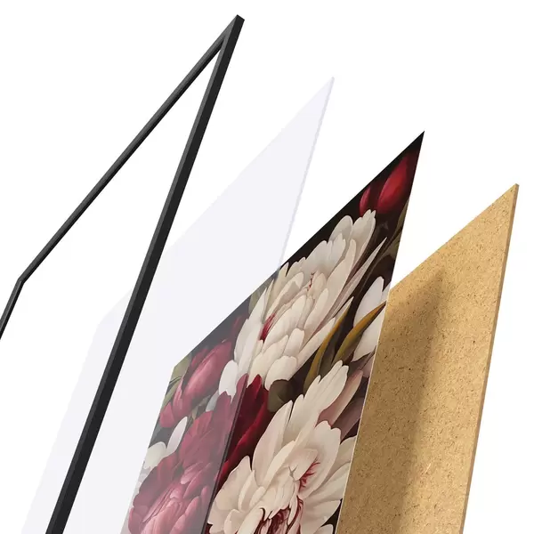 Plakatą sudaro rėmas, pleksiklas, atspausdintas vaizdas ir medžio drožlių plokštės pagrindas. Plakatą galima iš karto pakabinti ant sienos dėl kitoje pusėje esančių laikiklių.