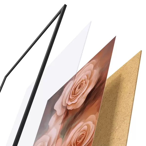 Plakatą sudaro rėmas, pleksiklas, atspausdintas vaizdas ir medžio drožlių plokštės pagrindas. Plakatą galima iš karto pakabinti ant sienos dėl kitoje pusėje esančių laikiklių.