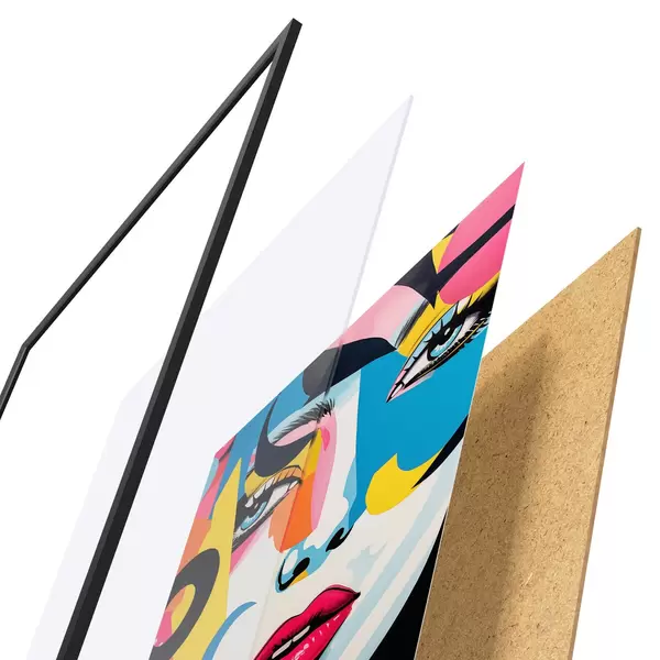 Plakatą sudaro rėmas, pleksiklas, atspausdintas vaizdas ir medžio drožlių plokštės pagrindas. Plakatą galima iš karto pakabinti ant sienos dėl kitoje pusėje esančių laikiklių.