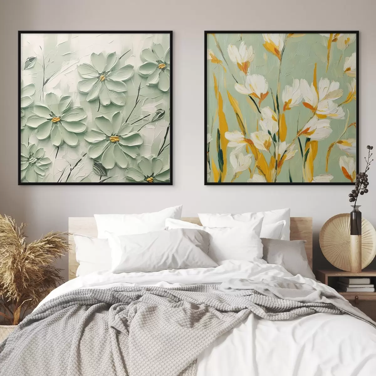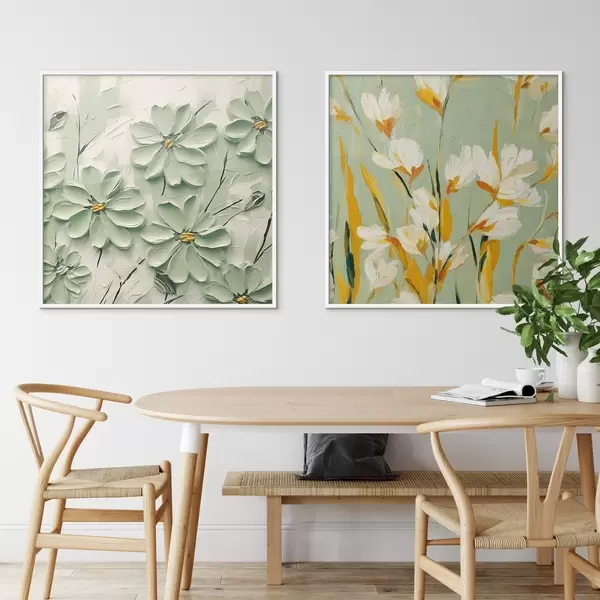 Plakatas Gėlių pieva: meno kompozicija su tūrinėmis gėlėmis pasteliniame fone d00567